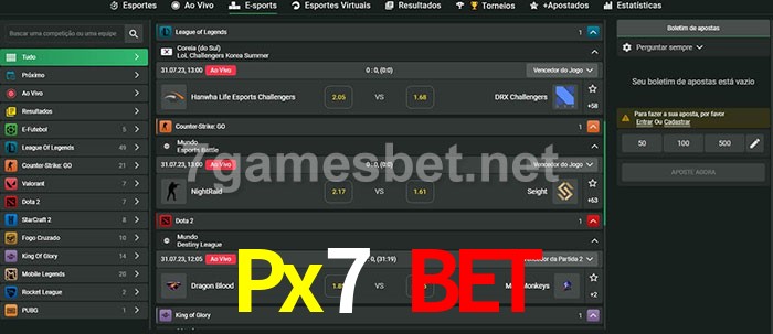 O Px7 Bet oferece uma grande seleção de opções de apostas em e-sports com probabilidades competitivas